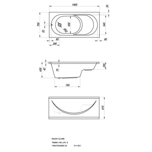 Kolpa San - Tamia 180x80 beépíthető egyenes fürdőkád