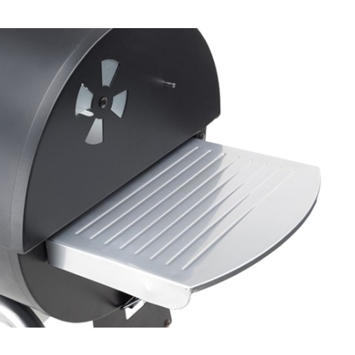 A tűztér oldalán szabályozható szellőzéssel és az állítható magasságú faszén tartóval pontosan állítható a sütési hőmérséklet. A grillrács könnyen tisztítható, a hamufogó tálca kényelmesen üríthető. Az oldalsó polcon kényelmesen tárolhatók az eszközök. Jó alternatívája a gömbgrilleknek.