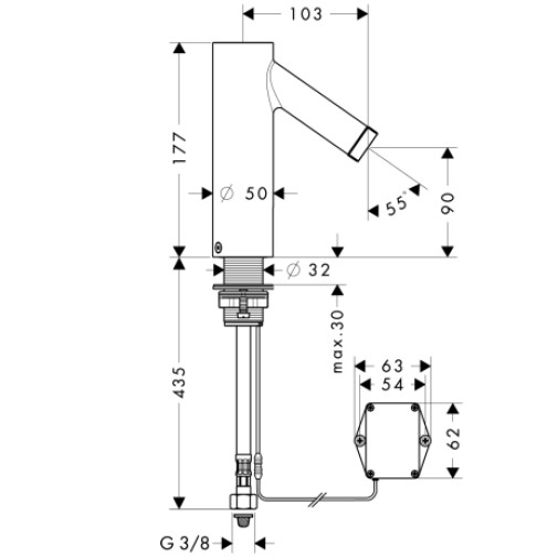 Hansgrohe - Axor Starck Elektronikus mosdócsaptelep hőmérséklet szabályozással elemes működtetésű