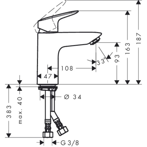 Hansgrohe - Logis egykaros mosdócsaptelep 100 push open lefolyó-garnitúrával