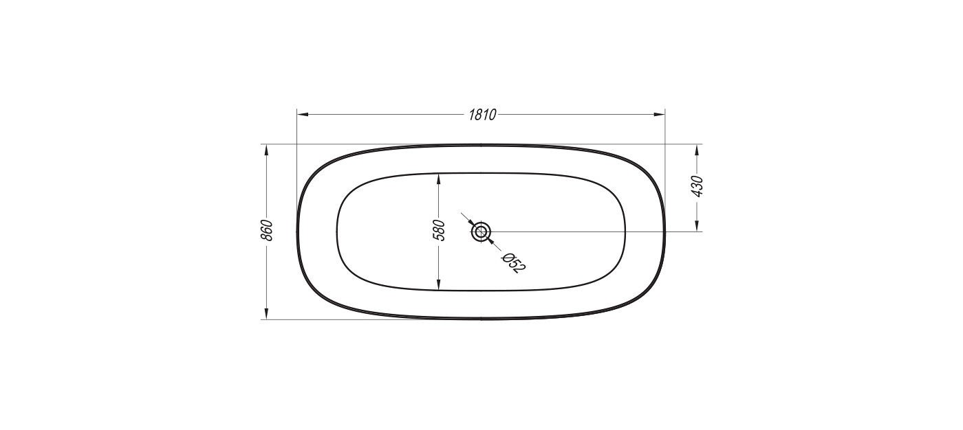 SZABADON ÁLLÓ FÜRDŐKÁD, LE- ÉS TÚLFOLYÓVAL, A KÁDTEST ÉS AZ ELŐLAP EGYBEÖNTVE