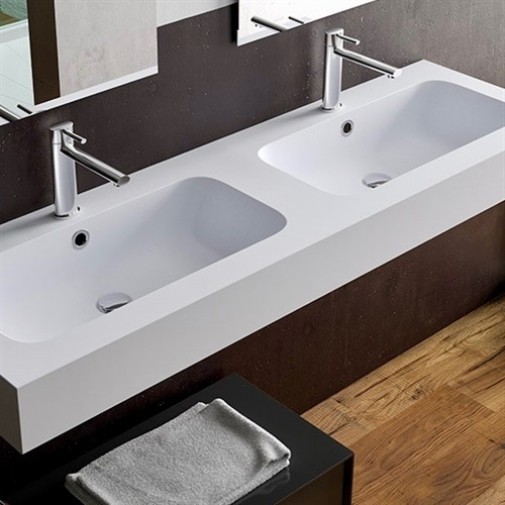 Ragyogó fényes fehér színben érhető el. A kívül szögletes és a belül lekerekített formák egyszerre jellemzik az olasz tervezésű mosdónkat.
