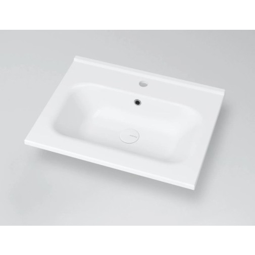 Vékony peremmagassága (2 cm) miatt kiválóan mutat pultba süllyesztve, valamint fürdőszobabútorra is tehető.