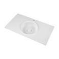 Vékony peremmagassága (1,5 cm) miatt kiválóan mutat pultba ültetve, valamint fürdőszobabútorra is tehető.