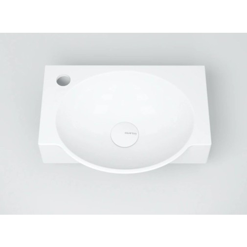 Ez a mosdó MATT fehér színben is elérhető. A mosdón csaplyuk található, túlfolyó nélküli változat.