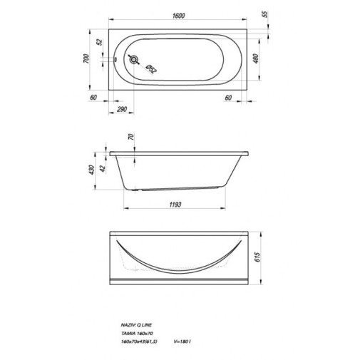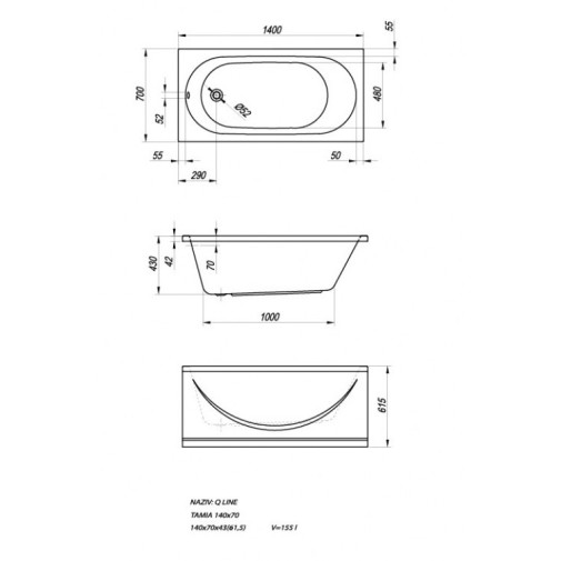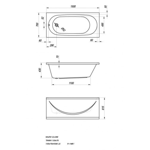 Tamia 160x70 beépíthető egyenes fürdőkád