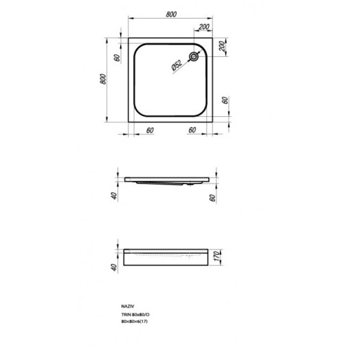 Trin 80x80 beépíthető akril szögletes zuhanytálca.