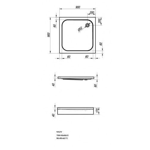 Kolpa San - Trin 90x90 beépíthető akril szögletes zuhanytálca