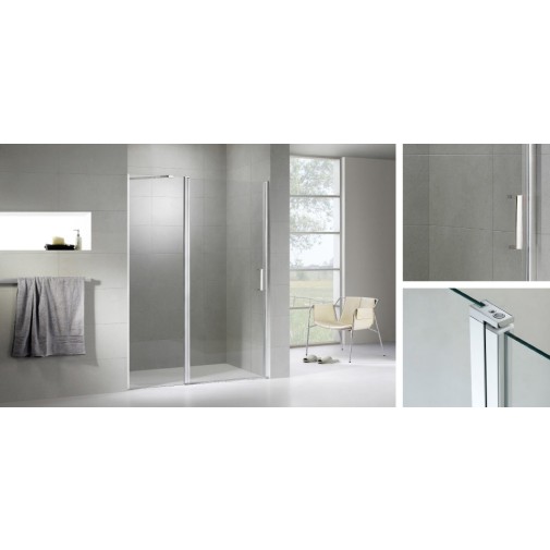 Pure modellünk zuhanyfalaink nyílóajtós kivitelét képviseli. A nyílóajtónak köszönhetően Önnek nem kell szűkölködnie a ki-és beszállás közben, így kényelmesen évezheti a tusolás teljes időtartalmát. Biztonsági üvegfalával és a rozsdamentes acél tartókonzollal pedig minden kétsége elszállhat afelől, hogy modellünk nem 100%-osan az Ön igényeit szolgálná. Megfordítható ajtónyitási lehetőséggel a maximális kényelemért.