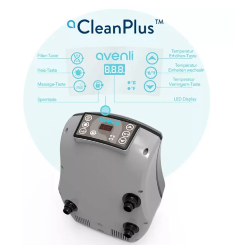 A víz felmelegítését egy biztonságos, dupla szigetelésű, beépített fűtőrendszer végzi kb. 1.5-2.0 ˚C/h teljesítménnyel. Az időzítővel előre is fűthetjük a medencét. Az automata fagyvédelmi rendszer nem engedi megfagyni a vizet a medencében.