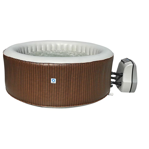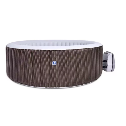 Nagyméretű felfújható jakuzzi 4-6 főre, elegáns natúr, barna rattan mintás burkolattal.