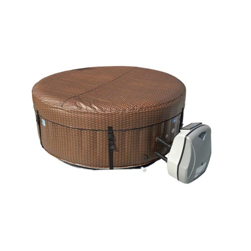 Nagyméretű felfújható jakuzzi 4-6 főre, elegáns natúr, barna rattan mintás burkolattal.
