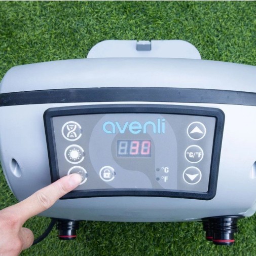 A víz felmelegítését egy biztonságos, dupla szigetelésű, beépített fűtőrendszer végzi Kb. 1.5-2.0 ˚C/h teljesítménnyel. Az időzítővel előre is fűthetjük a medencét. Az automata fagyvédelmi rendszer nem engedi megfagyni a vizet a medencében.