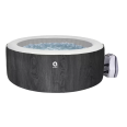 Nagyméretű felfújható jakuzzi 4-6 főre, fekete vintage deszka mintázattal.