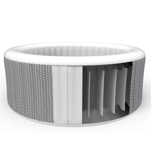 Nagyméretű felfújható jakuzzi 4-6 főre, elegáns szürke rattan mintás burkolattal.