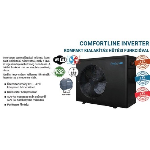 Szezon kezdetekor, amikor nagy a fűtési igény, a Comfortline Inverter 100% kompresszor és ventilátor sebességgel működik a gyors felfűtéshez. Amikor a medencehőfokot tartani kell, a Comfortline Inverter magasabb COP érték mellett alacsony sebességgel működik az energiatakarékosság jegyében. Opcionálisan Wifi-vel is felszerelhető, így távolról is beállíthatja medencéje hőmérsékletét.