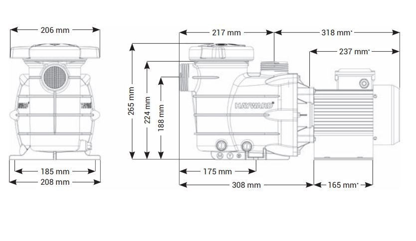 A Hayward Powerline szivattyúk gazdaságos motorokkal szereltek, kiváló hatékonysággal üzemelnek. Erősített vegyszerálló szűrőházzal szereltek. A megnövelt előszűrő miatt ritkábban szükséges a szűrőrész tisztítása, karbantartása rendkívül egyszerű. Az előszűrő ház leeresztő csavarral rendelkezik a könnyű téliesítés érdekében.