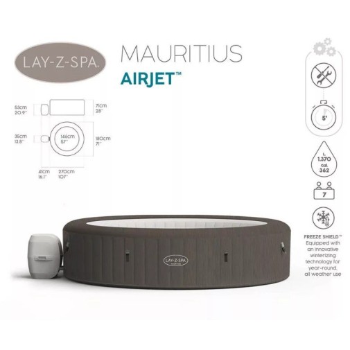 A Lay-Z-Spa™ Mauritius felfújható jakuzzi egy gombnyomással összeállítható pezsgőfürdő medence, mely digitálisan fűthető, energiatakarékos és egyszerűen hordozható.