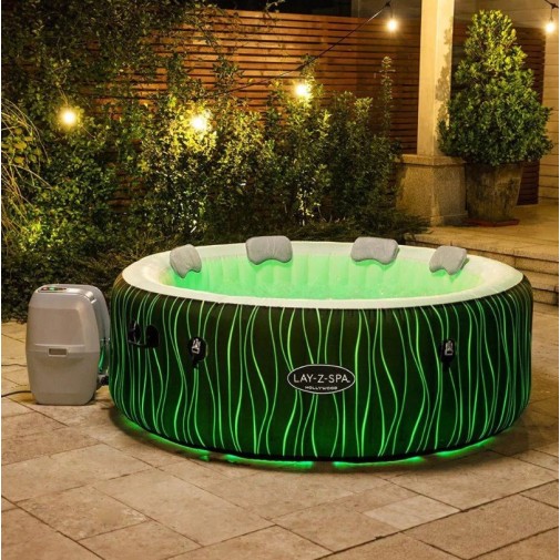 A masszázsmedence egy gombnyomással felfújható, és vízfeltöltés után azonnal használható kül- és beltéren egyaránt. Belseje puha, hőszigetelt borítású és kellemes tapintású, 7 színváltós LED világítással. A Freeze Shield™ automatikus fűtésrendszer meggátolja a víz megfagyását és ezzel a medence károsodását.