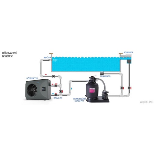 A hőszivattyúkat egy bypass ágba kell bekötni a szűrőberendezés után, a befúvók elé. Működtetésükhöz 230V áramforrás szükséges, de kevés áramot vesznek fel.