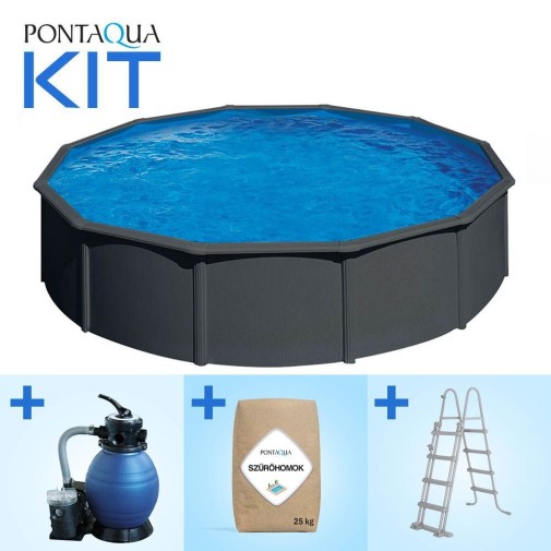 Pontaqua Family Pool KIT ANTRACIT kerek fémfalas családi medence szett 360 x 120 cm