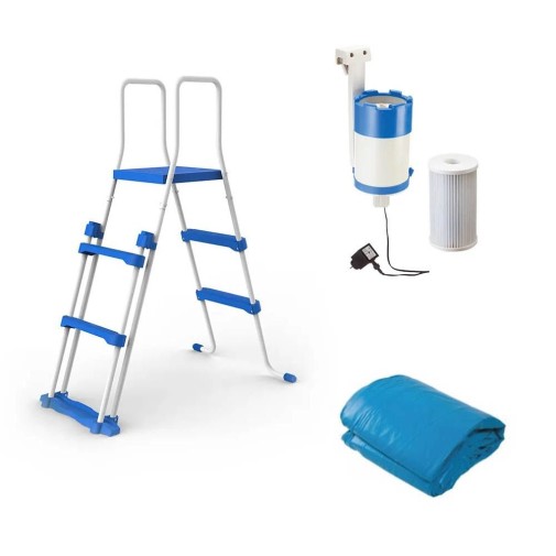 A csomag tartalma: medencetest, fólia, 2 gégecső, szkimmer, befúvó