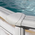 A csomag tartalma: alsó és felső sínkészlet, oldaltámaszok, PVC belső fólia, festett fehér acélpalást, szkimmer és befúvó, homokszűrős vízforgató, biztonsági kétágú létra, gégecső
