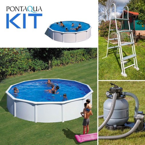 PONTAQUA KIT WHITE kerek fémfalas családi medence szett 4,6 x 1,2 m