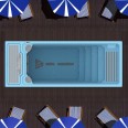 A 6 x 2,35 méteres medence kialakítása maximális kényelmet és funkcionalitást biztosít. Két végén napozóágy található, melyek közül az egyik 10 cm-rel a vízszint alatt helyezkedik el, így tökéletes helyet biztosít a pihenéshez.