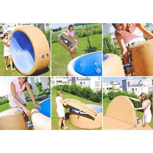 A Well is jakuzzi burkolat fának látszik, de faanyagokkal járó karbantartási teendőket nem igényel, a természet színeihez legjobban passzoló színekben kapható.
