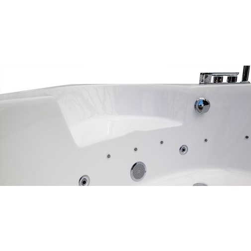 Tivoli kádunk minden olyan tulajdonságot magában foglal, ami a teljes kikapcsolódáshoz szükséges. Kényelmes és igazán exkluzív fejpárnai tökéletes kényelmet biztosítanak Önnek a fürdőzés teljes ideje alatt. A letisztult dizájnú üvegbetét teszi igazán figyelemfelkeltővé Tivoli hidromasszázskádunkat. A színterápiás világítás a nyitott üvegfelülettel pedig valóban páratlan látványt kölcsönöz. Hidromasszázs rendszerével elérhető kényelmes masszírozást követően sem kell kádja tisztításával fáradoznia az ózonos vízfertőtlenítő – és kiszárító rendszernek köszönhetően.